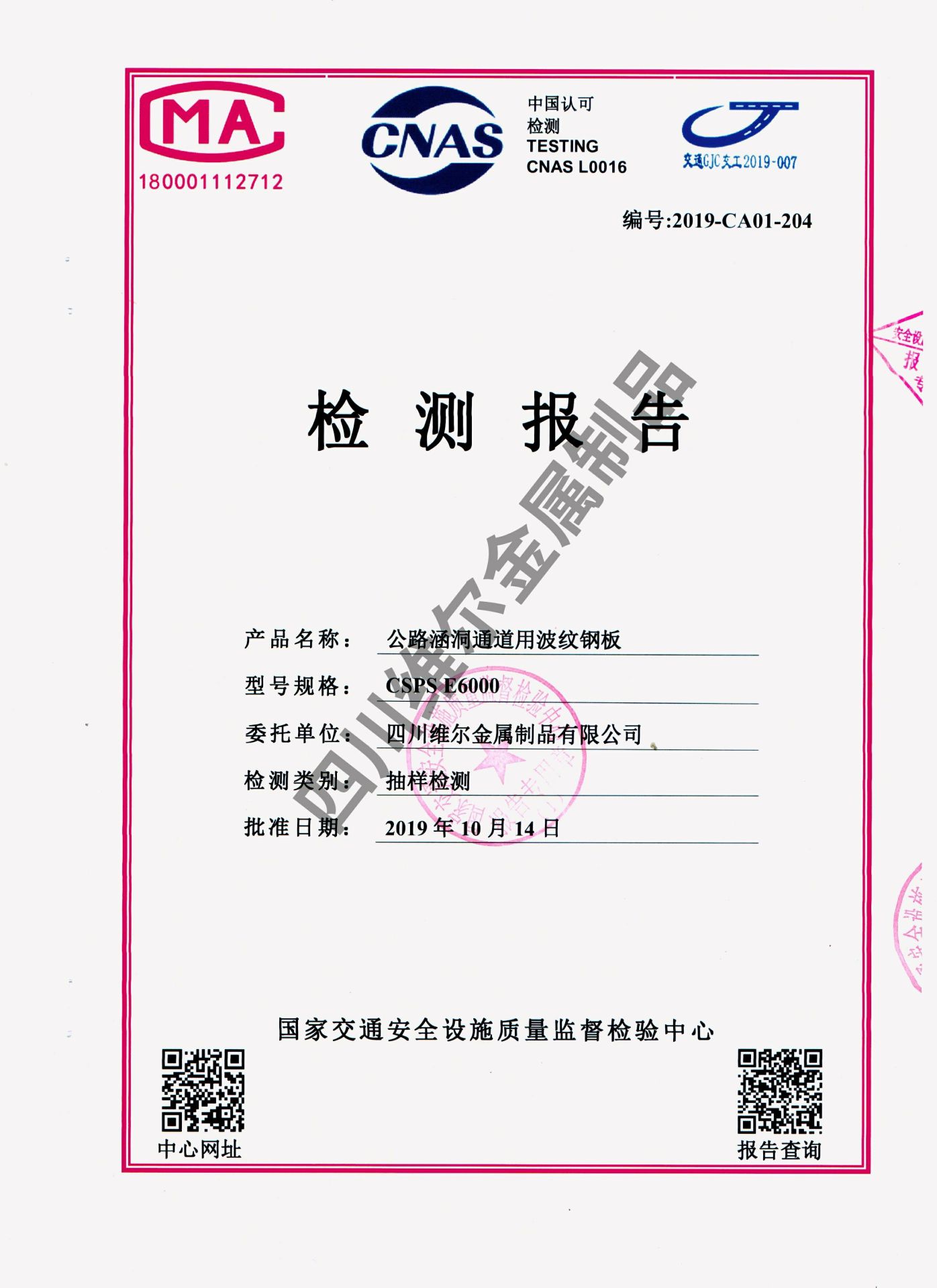 检测合格报告